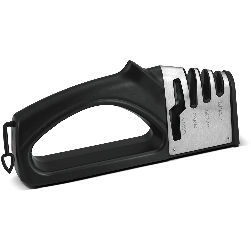 stupňový brousek na nože a brousek nůžek vyroben z ABS plastů se soft úpravou a protiskluzovou základnou.
