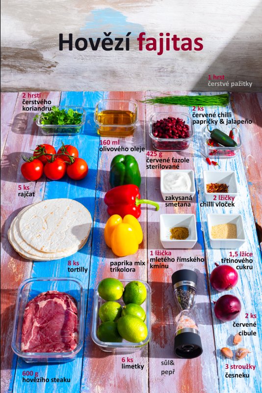 Maso na mexický Fajitas necháme marinovat nejméně 2 hodiny, lépe přes noc v chladničce.