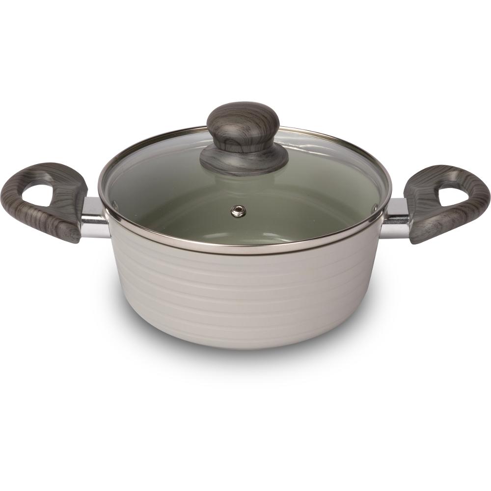 Nádobí opatřeno vnitřním keramickým povrchem odolným proti oděru a připalování, silným dnem a velmi elegantními úchyty pro větší bezpečnost, funkčnost a pohodlí.