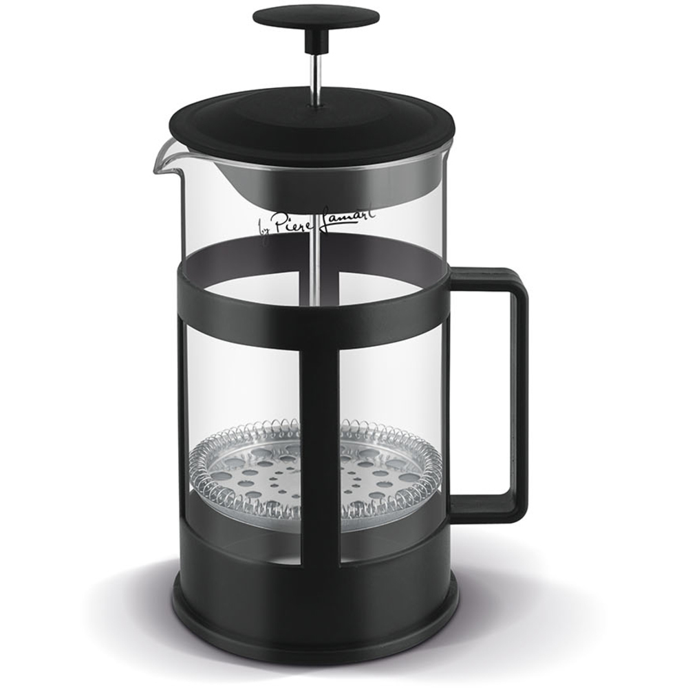 Konvice obsahuje nerezové stlačovací sítko pro čaje a mletou kávu.
