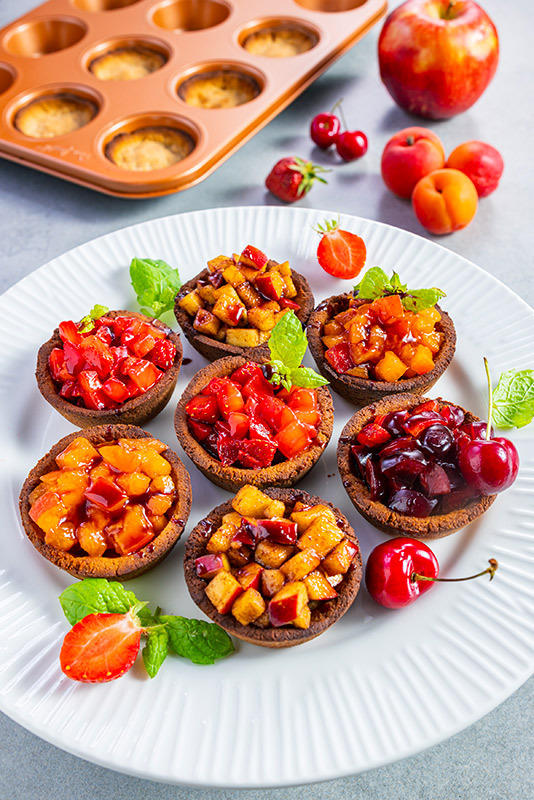 Pokud vám prázdné košičky zbudou nebo li připravite dvojnásobnou dávkou, můžete je zamrazit a naplnit ovocem pozdeji podle aktuální sezony.