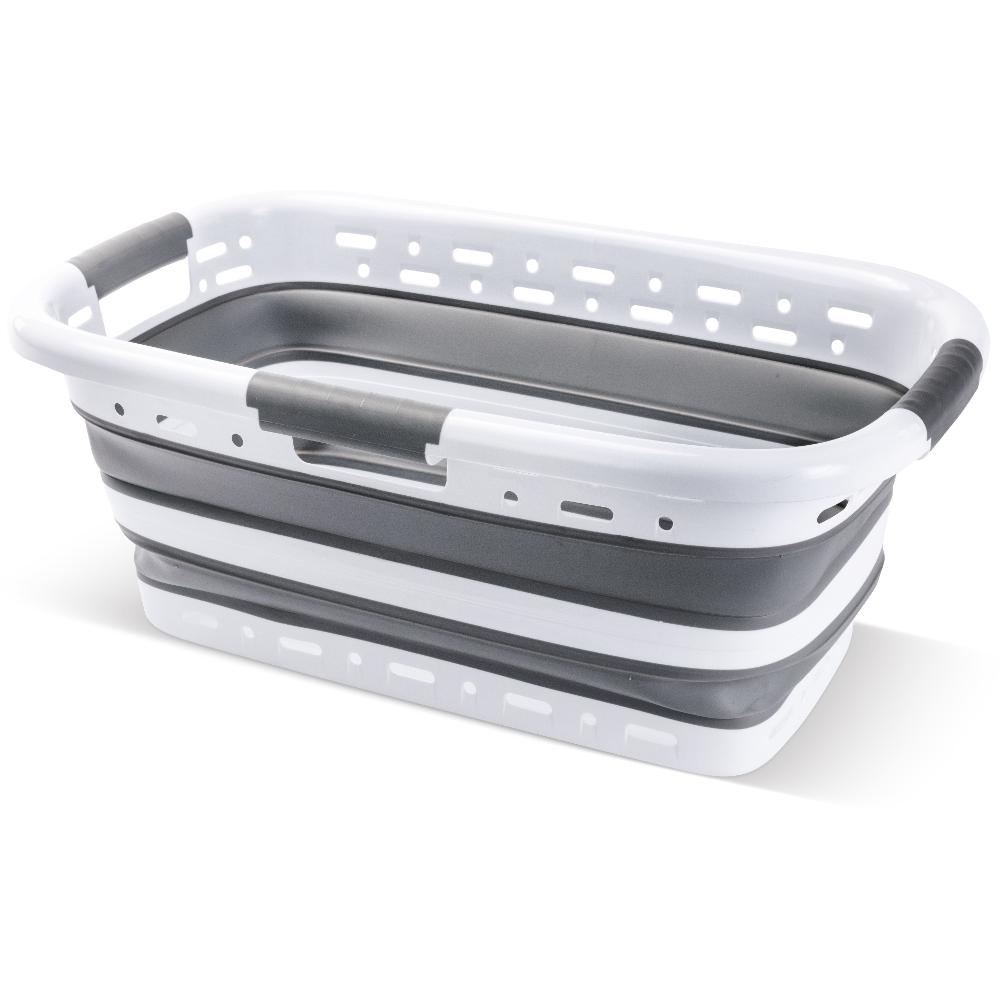 Praktický skládací koš na prádlo z odolného PP plastu a silikonu je ideální pro přenášení špinavého i čistého prádla.
