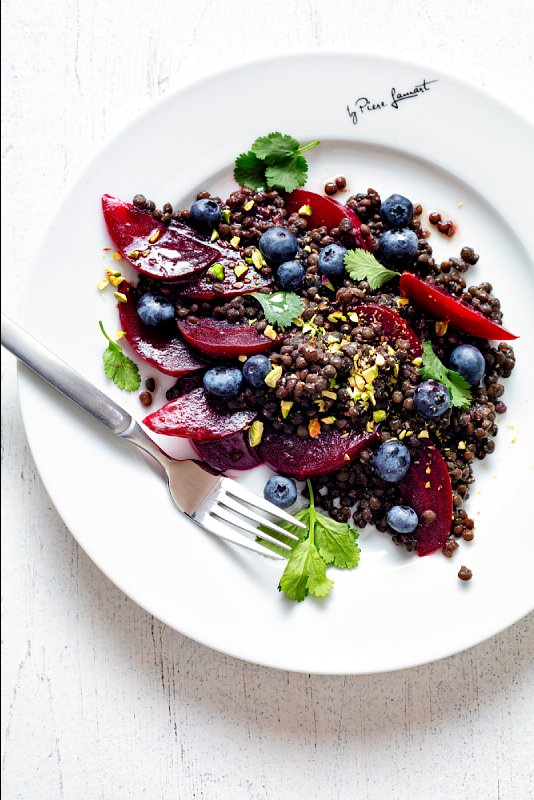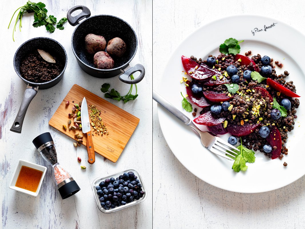 Salát z pečené červené řepy a čočky beluga