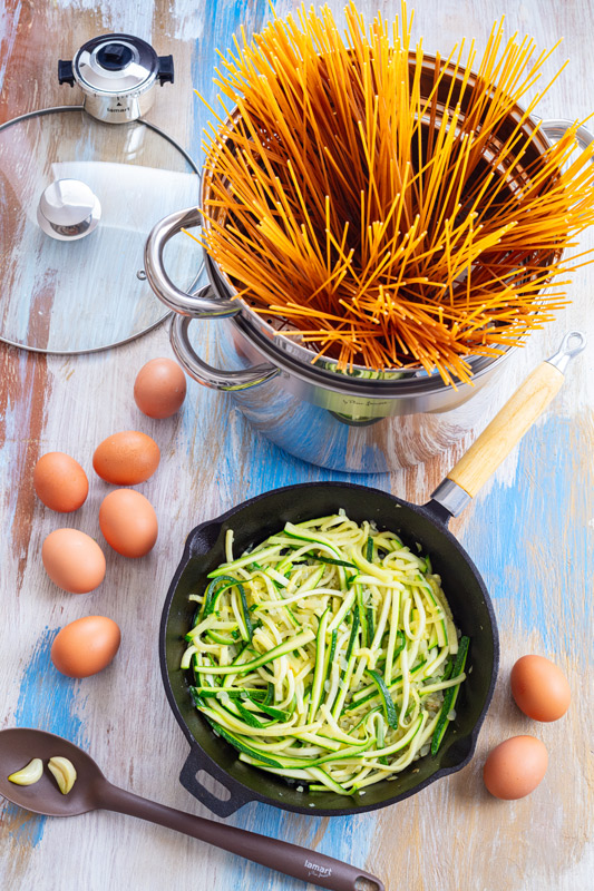 - Místo cukety můžeme použít špenát nebo zelené fazolky.