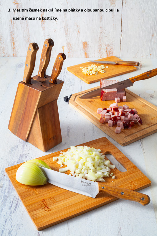 - Pro vegetariánskou variantu vynecháme uzené máso a nahrádime sádlo rostlinným olejem.