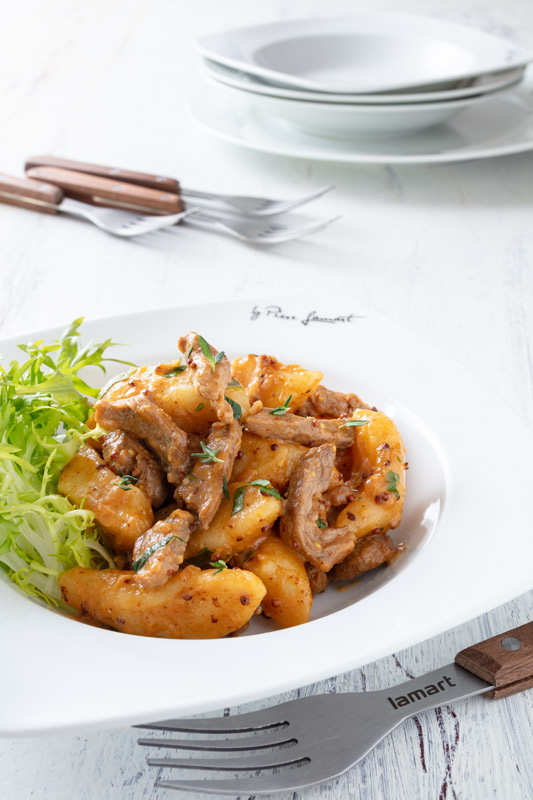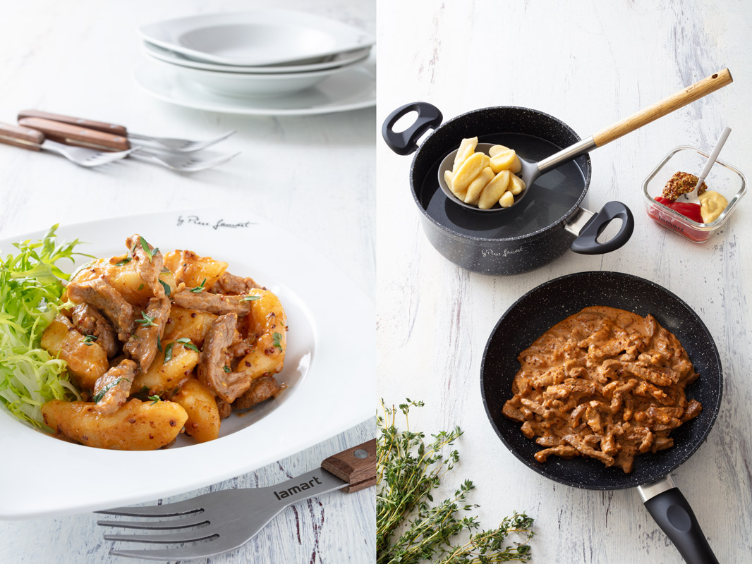 Bramborové noky s vepřovou panenkou a hořčicovou omáčkou