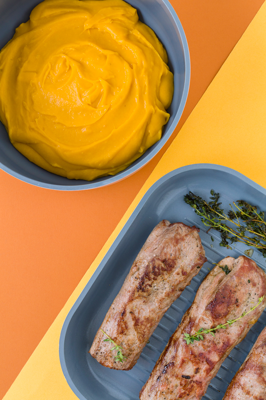 Pečený hřbet z divočáka s dýňovým pyré