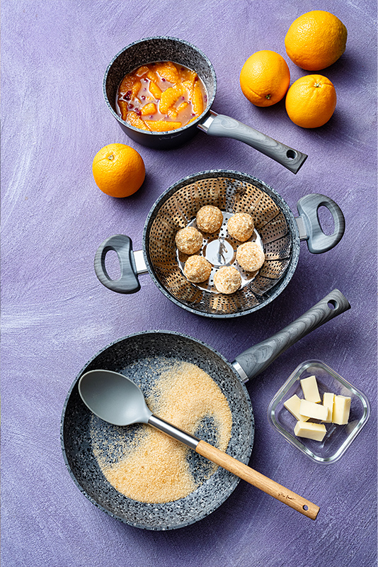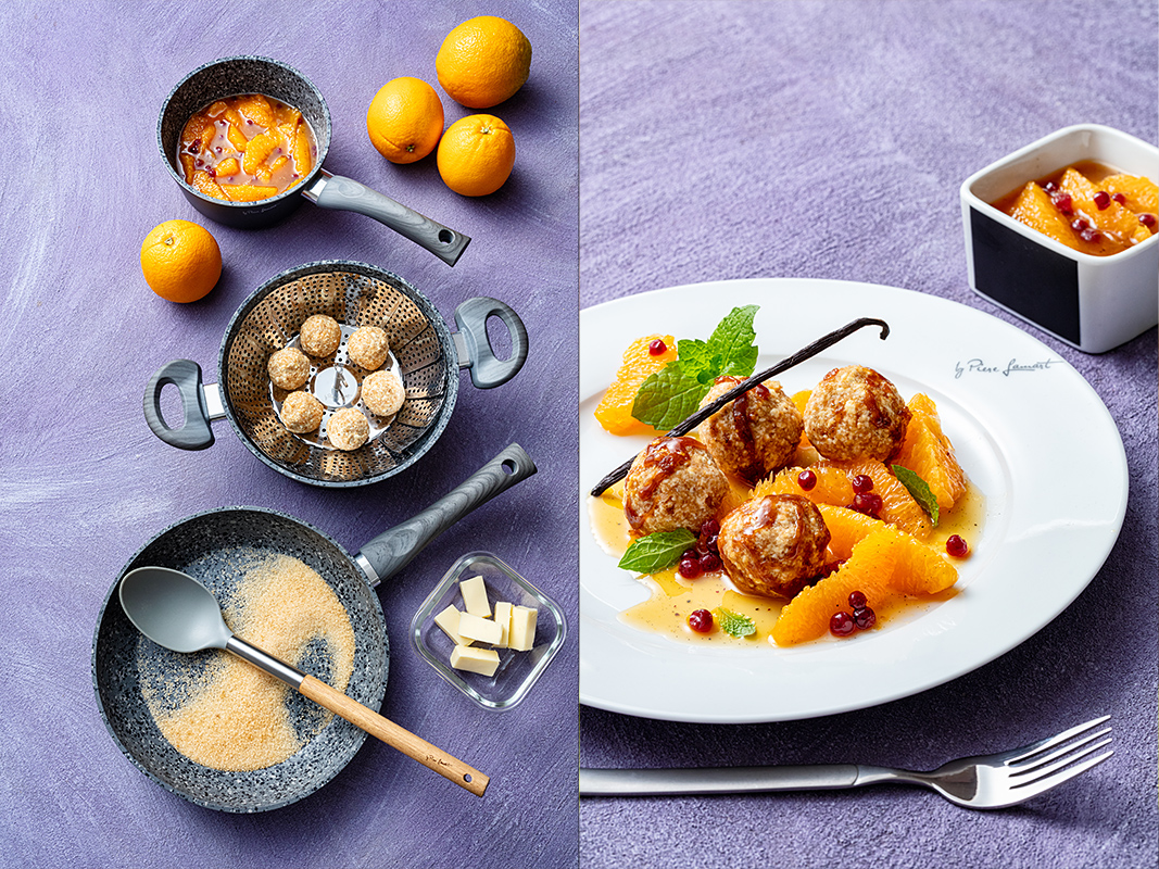 Karamelizované tvarohové knedlíčky s marinovanými pomerančovými filety