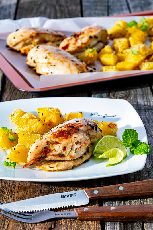Marinovaná kuřecí prsa mojito s křupavými bramborami