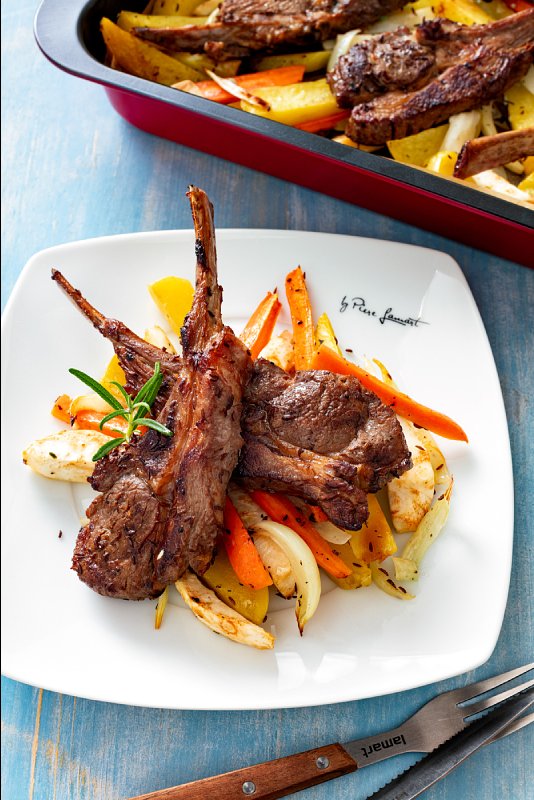Opečené jehněčí podáváme ihned s horkou zeleninou.