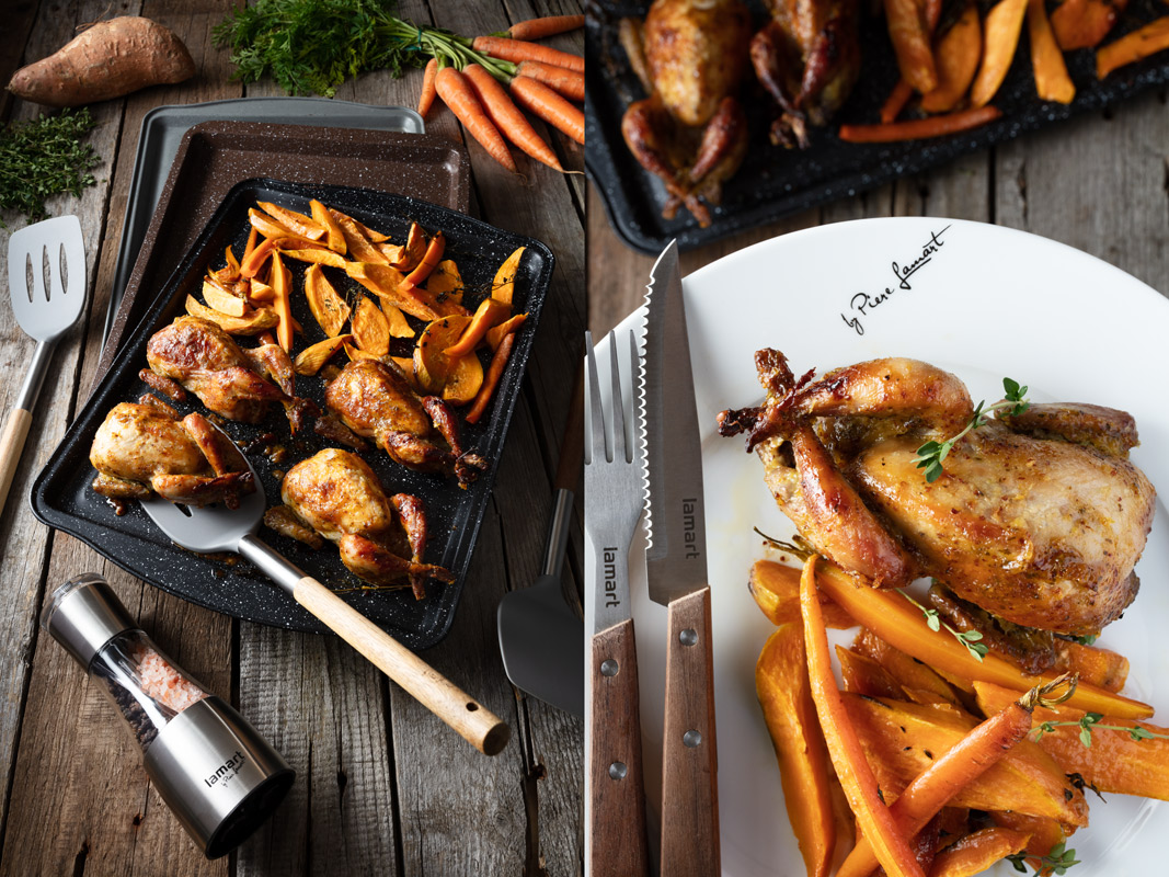 - Křepelky můžeme péct společně s mrkví, dýní nebo na měsíčky nakrájenými sladkými bramborami. Budeme potom mít i ideální přílohu ke křepelkám.