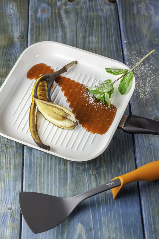 Pánev na sucho rozpálíme, přidáme omytý, osušený banán ve slupce a po obou stranách opečeme. Délka pečení je přibližně 5 a 5 minut. Délka je závislá na výkonu vašeho spotřebiče.