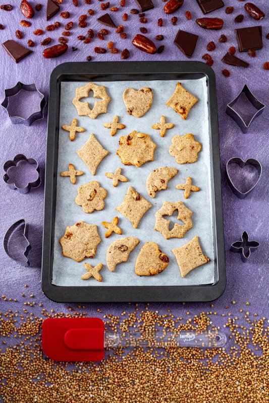 Vzniklé sušenky na plech s pečicím papírem a pečeme 12–15 minut.
