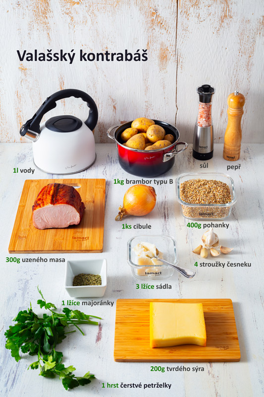 - Pro vegetariánskou variantu vynecháme uzené máso a nahrádime sádlo rostlinným olejem.