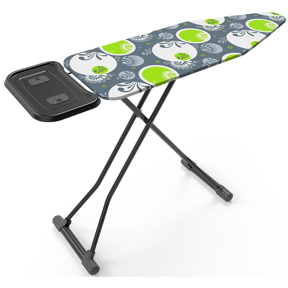 Prkno je výškově nastavitelné s odkládací plochou pro napařovací žehličky opatřeno silikonovými prvky proti poškození plochy žehličky při jejím odložení.